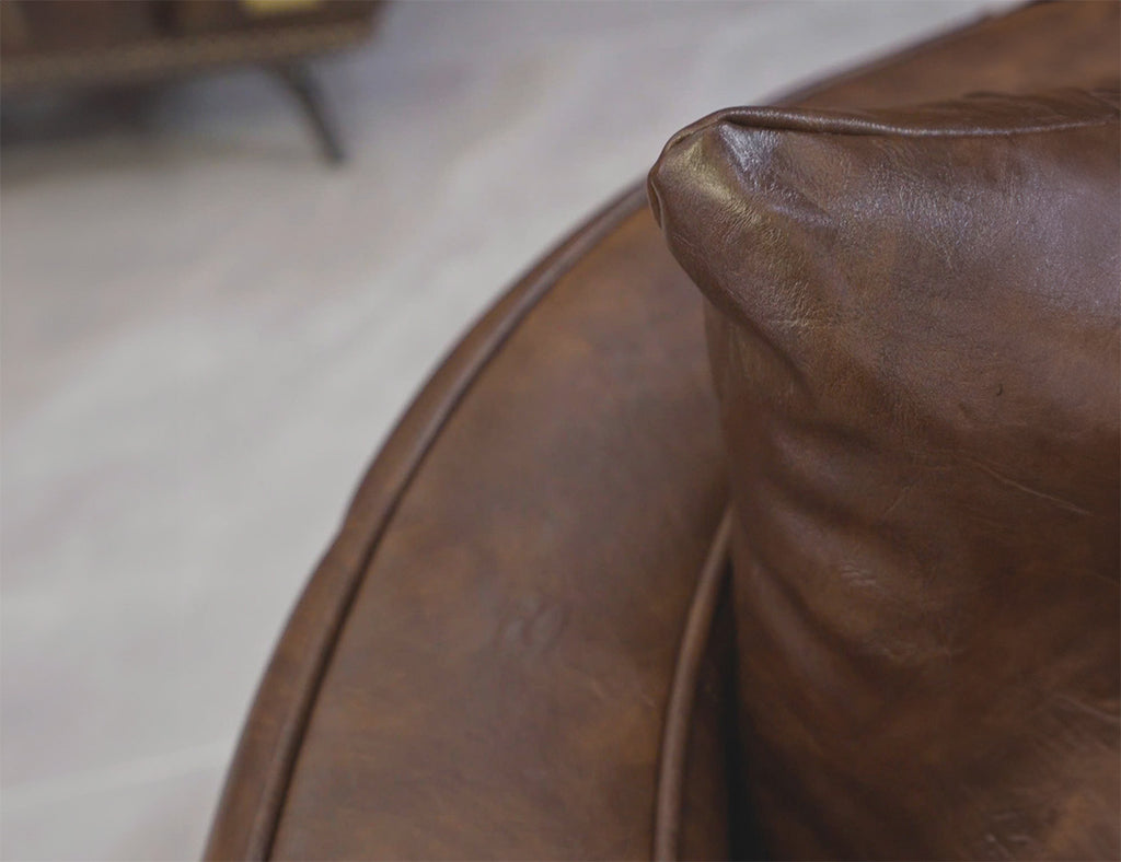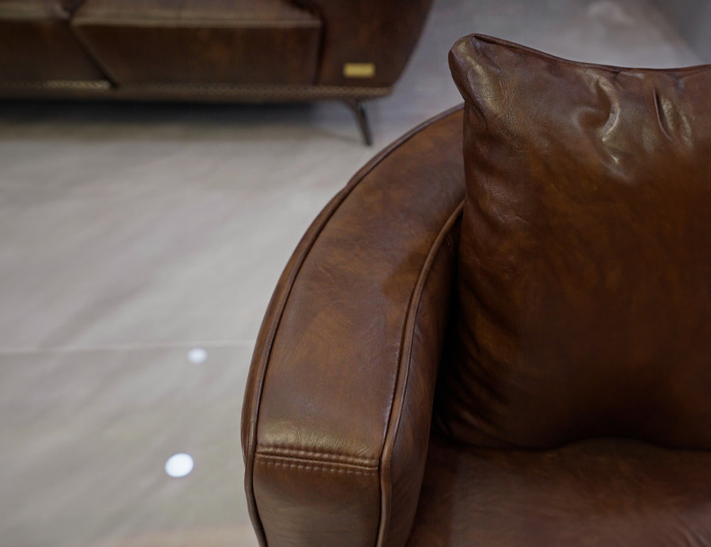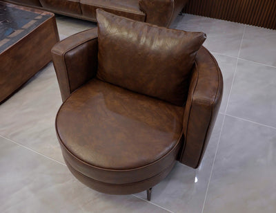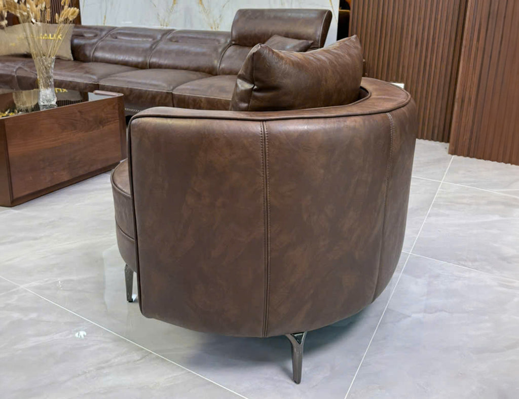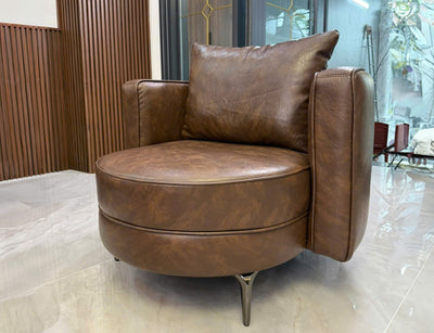 Ghế Armchair bọc da, dáng tròn tựa rời, chân inox