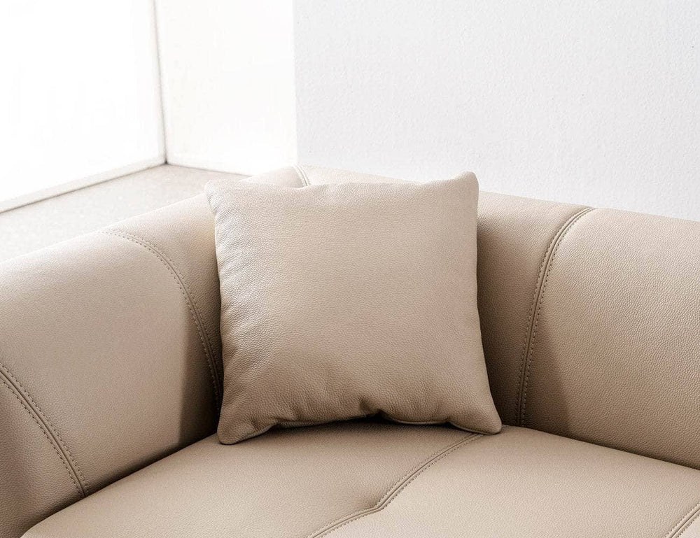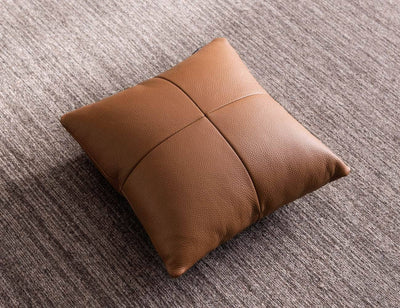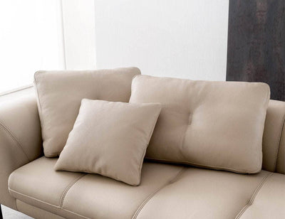 Gối sofa do KALIX sản xuất: Bên trong là lớp bông gòn nhân tạo mềm mại đã qua xử lí, êm ái và tơi xốp, ít xẹp lún, thấm hút tốt, không gây bức bối, phù hợp với điều kiện thời tiết Việt Nam. - Bề mặt bọc có thể bằng da hoặc nỉ.