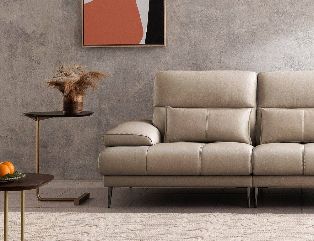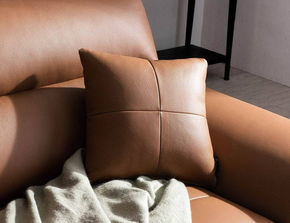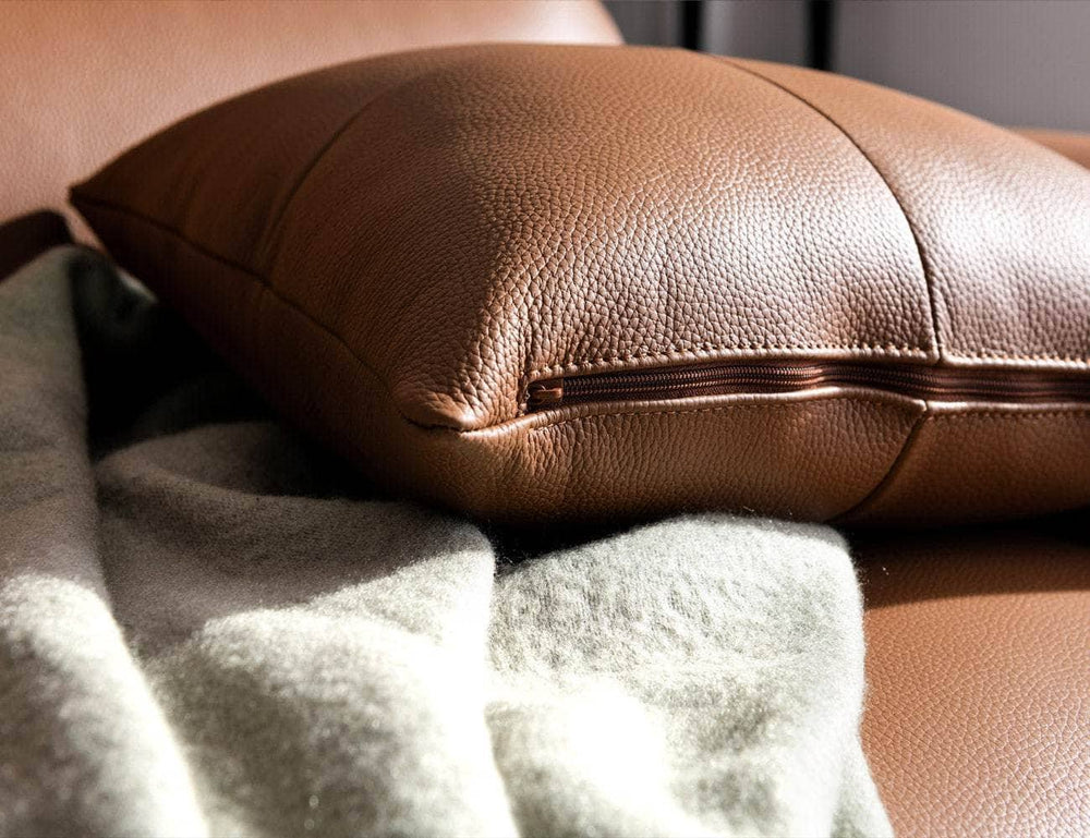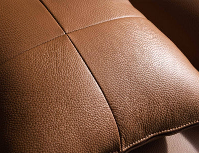 Da Camel với bề mặt vân đẳng cấp giúp bộ sofa trở nên cực kỳ sang trọng, nổi bật giữa phòng khách.