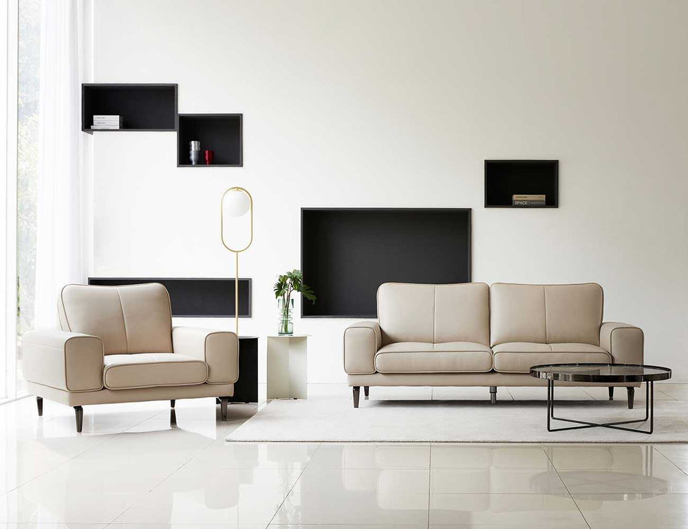 3. Thiết kế sofa văng da HEZAN 2 chỗ tựa liền
