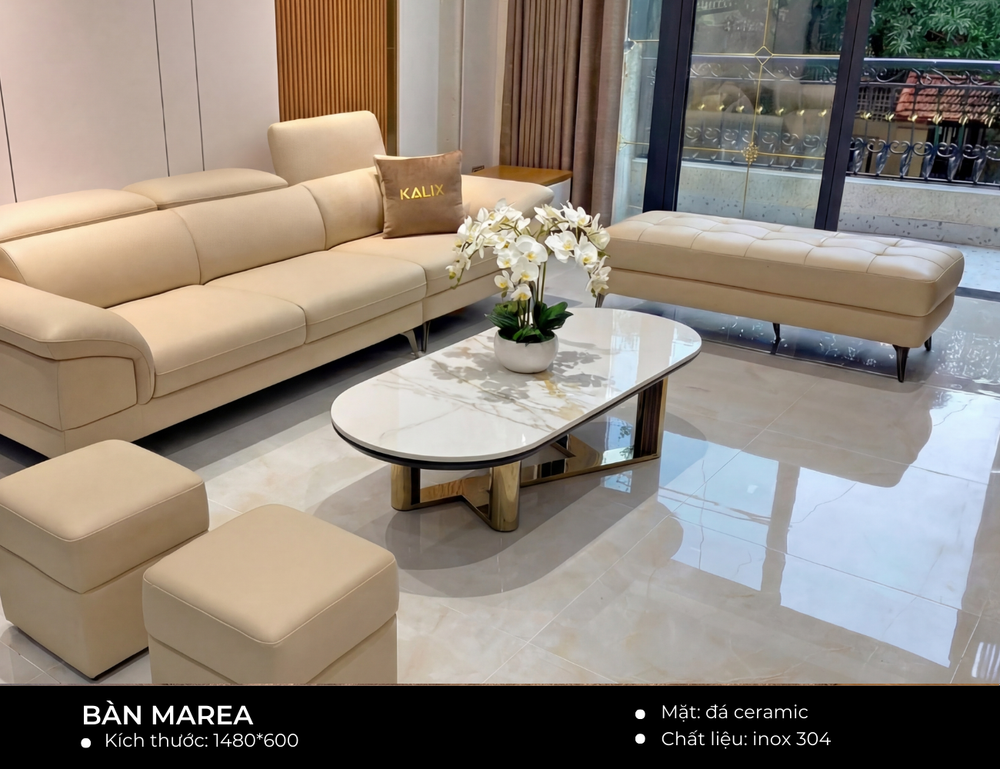 Sản phẩm có sẵn - Bàn trà chữ nhật mặt đá ceramic - Marea