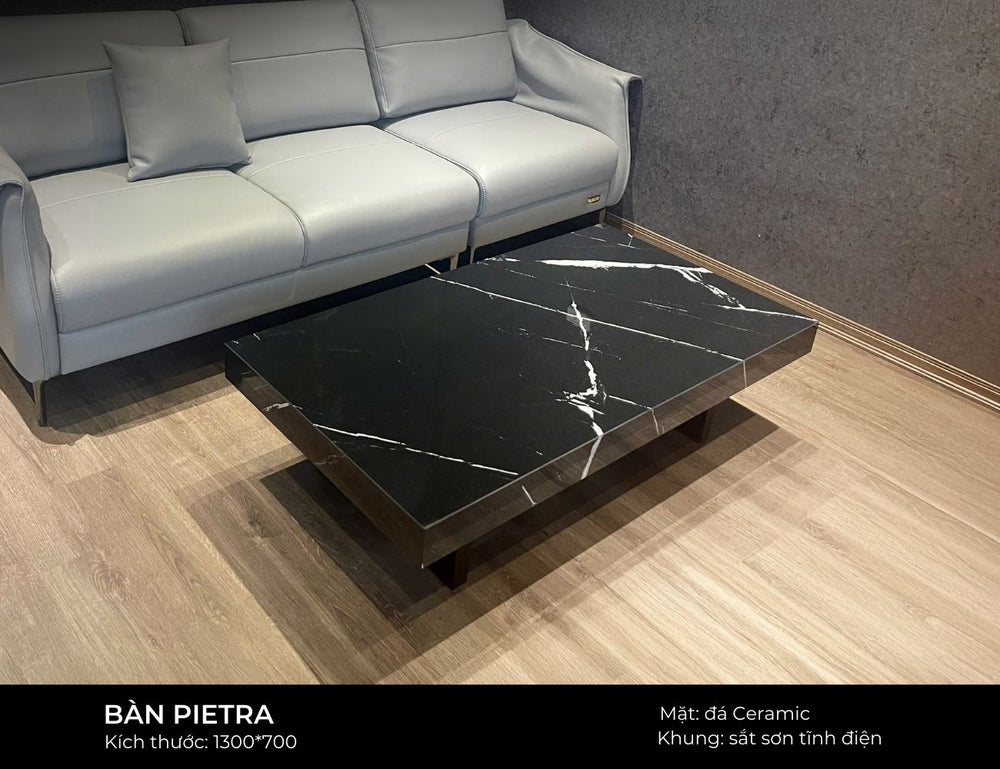 Sản phẩm có sẵn - Bàn trà hình chữ nhật, mặt đá Ceramic, khung sắt sơn tĩnh điện - Pietra